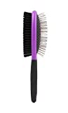 - Features two brushes and grooming actions in one! One side contains stainless steel tips with a protective coating to remove lose hair and detangle coat; the other side has dense nylon bristles to redistribute natural oils for a healthy, shiny coat