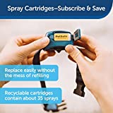 - REPLACEABLE REFILL SPRAY CARTRIDGES: Comes with 2 replaceable refill cartridges in unscented and citronella (try both to see which one you like best!); each cartridge contains 35 sprays and is recyclable